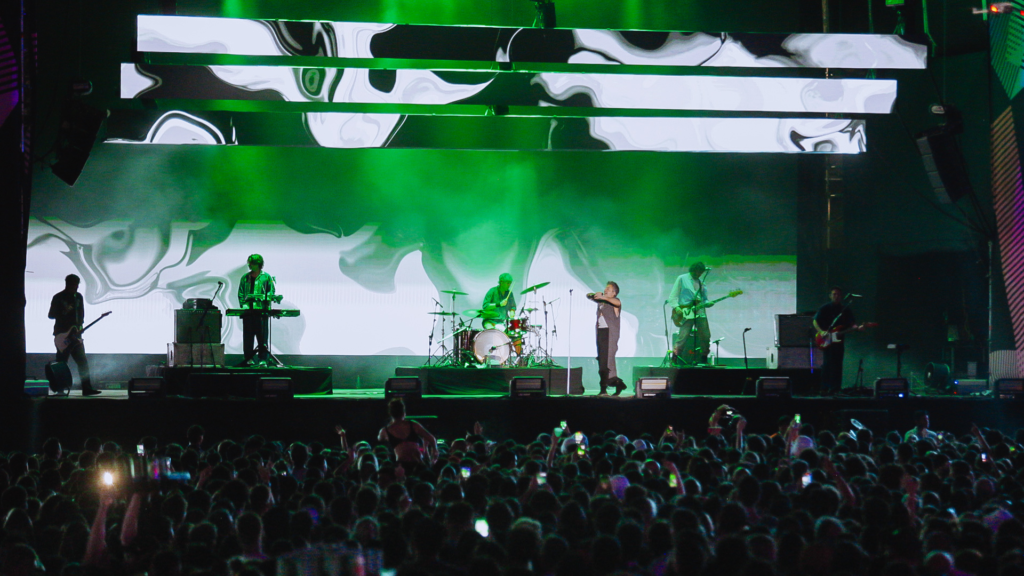 Otro de los grandes nombres del line-up fue Babasonicos en el escenario Sur sumando pantallas extras que solo estuvieron en su show dando cuenta de que la puesta en escena forma parte clave de su propuesta en vivo. Repasaron su último trabajo Trinchera (2022) con ‘Mimos son Mimos’, ‘Bye Bye’, ‘La Izquierda de la Noche’ y ‘Anubis’. También sumaron los clásicos que se cantaron bien fuerte como ‘Carismático’, ‘Irresponsables y ‘Yegua’ con un Adrián Dargelos —frontman de la banda— que derrochó su sensualidad recorriendo el escenario buscando conquistar tanto al público que estaba viéndolos, como al que esperaba en el escenario vecino por la próxima banda.